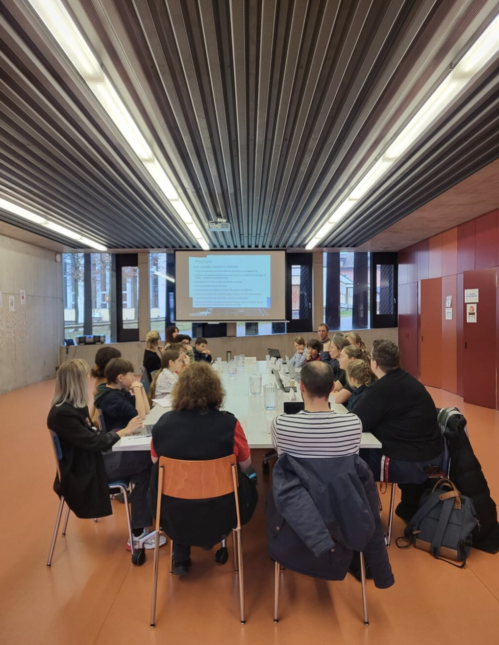 La commission de l’énergie de l’école de la Tour-de-Trême a été mise en place durant le printemps 2025. Elle est composée des 9 délégué.e.s de 6H-7H-8H, de la directrice d’établissement, de la TSS, de 3 enseignantes, du concierge de l’école, de la responsable de l’AES ainsi que de membres de la commune de Bulle.